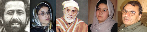 عکس بالا از راست به چپ: لطیف ناظمی، نادیا انجمن، استاد خلیل الله خلیلی، خالده فروغ و قهار عاصمی.